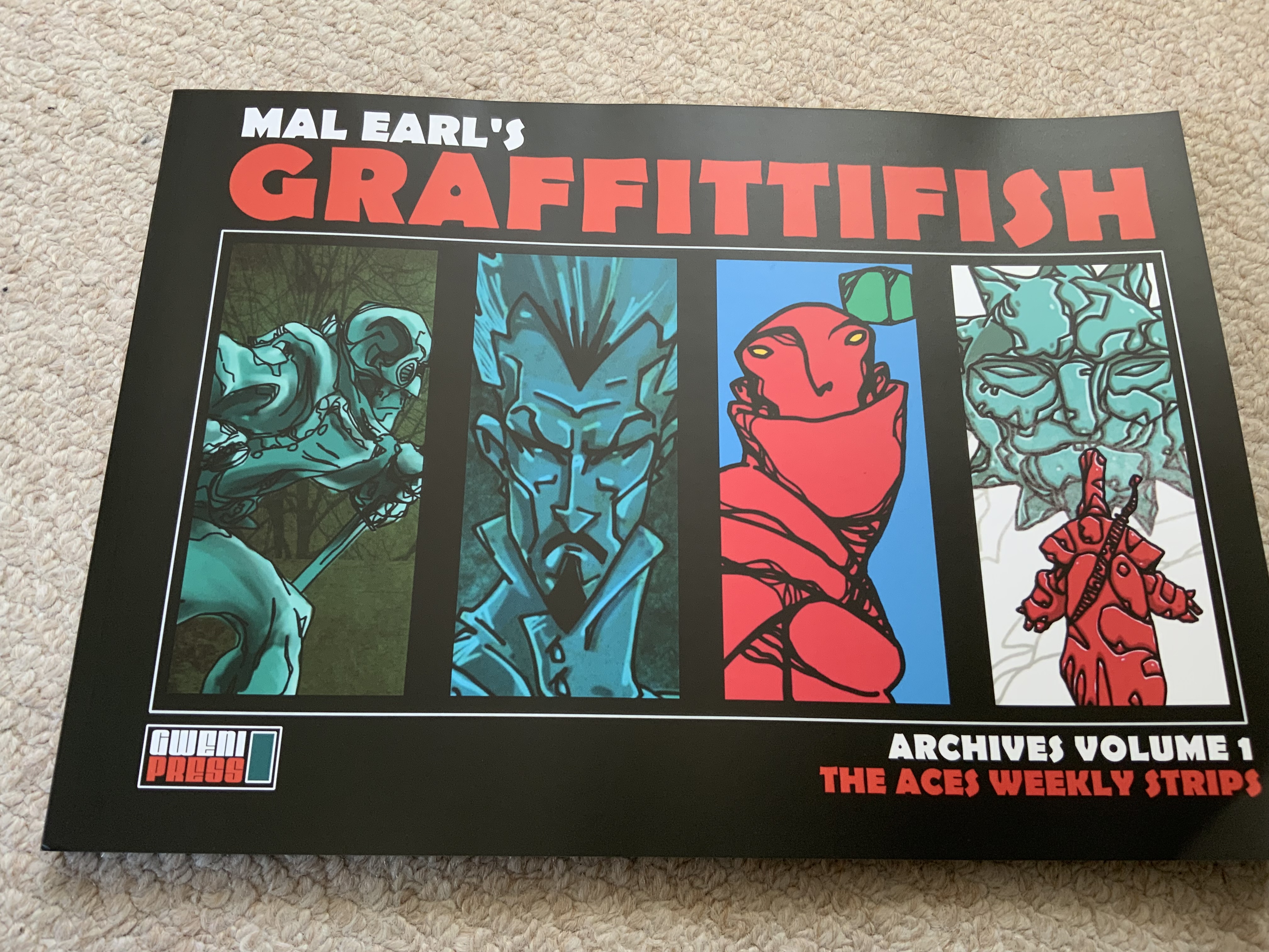 Collecting the first 136 pages of Aces strips, the GRAFFITTIFISH ARCHIVES VOLUME 1 presents four stand alone tales ranging from pure pulp action to surreal tales akin to graphic poetry, in big, A4, physical format in full colour for the first time anywhere.
