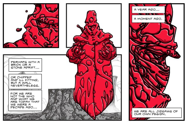 His comic work appeared in publications alongside such luminaries as Bill Scienkiewicz, David Lloyd, Glenn Fabry, Marc Hempel and Shaky Kane, and he has been a regular contributor to David Lloyd’s online Comic, Aces Weekly with his creator owned serials, Bullhawk, Scars, The Bridge and JIGSAW.