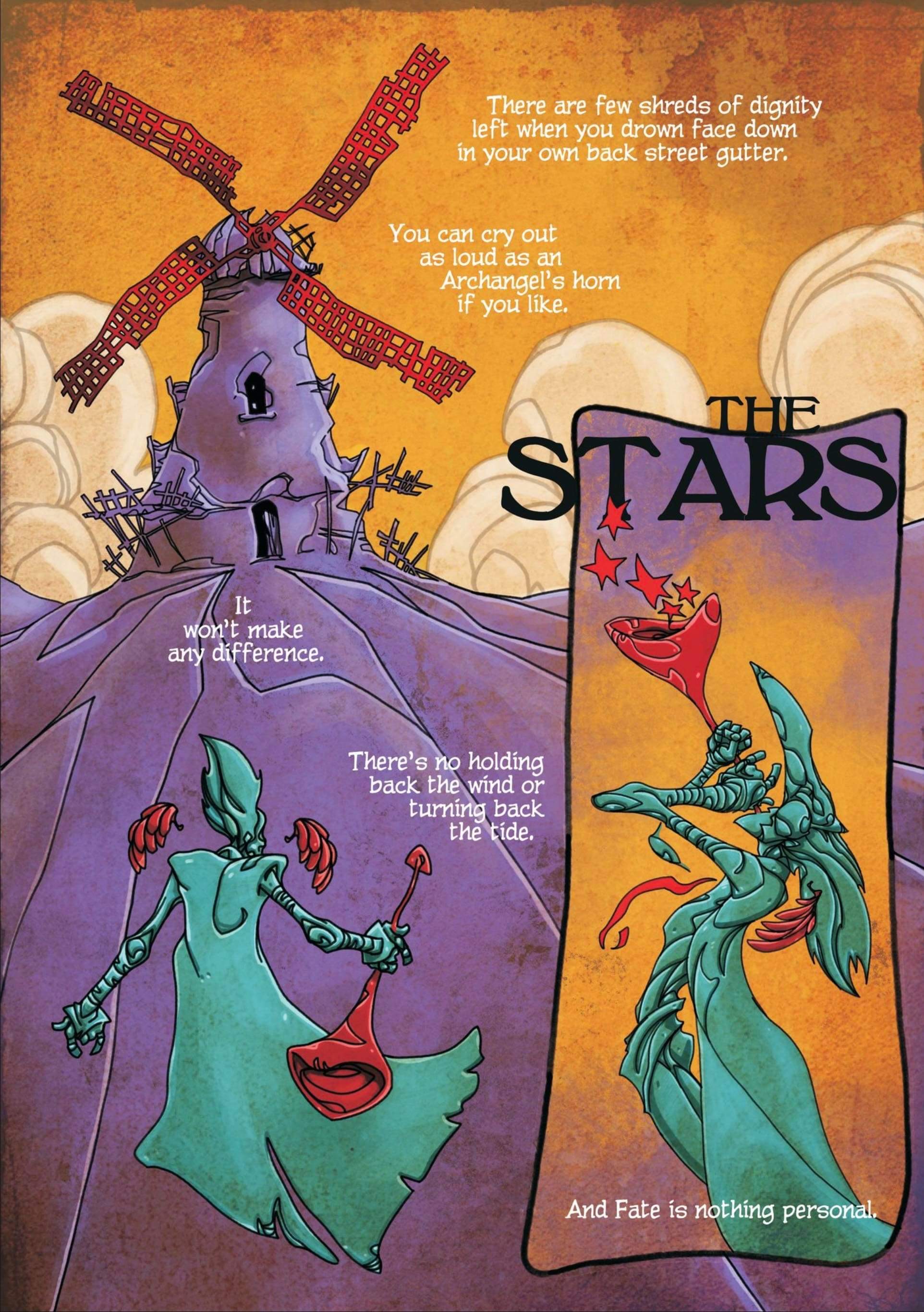 He was asked to contribute work for the San Diego based ‘The Mission’; for which he produced a three page strip interpretation of the poem ‘The Stars’, among others.